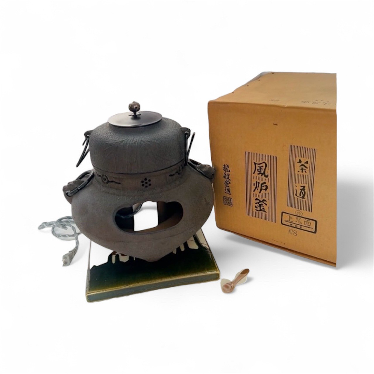 茶道具の中でも存在感を放つ「風炉釜」。こちらは敷板付きの炭型ヒーター仕様で、実用性と美しさを兼ね備えた逸品です✨