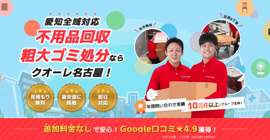 クオーレ名古屋は愛知県を中心に不用品回収を行う業者です。