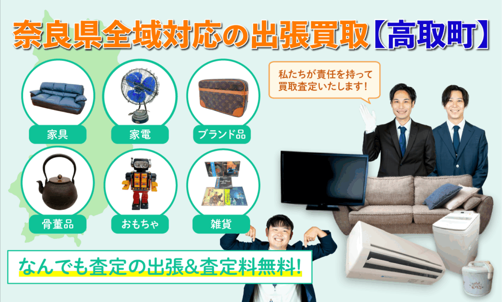 ガリンペイロでは、高取町のお客様にも出張費無料・即日対応で査定士がご自宅までお伺いします。丁寧かつスムーズな買取サービスで、皆さまの暮らしをサポートいたします。お気軽にご相談ください。😊